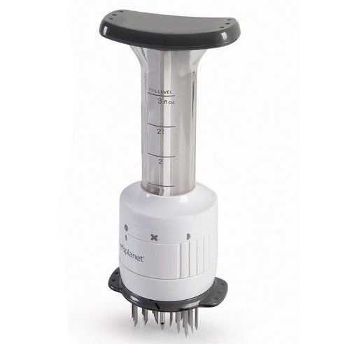 - The built-in piston releases the marinade into the meat with a needle-shaped applicator, rapidly saturating the flavor-enhancing ingredients inside the food.